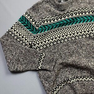 100% WOOL MULTI COLORED FAIR ISLE DESIGN KNIT PULLOVER SWEATER