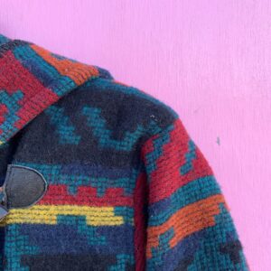CRAZY TEXTILE HOODED SOUTHWESTERN STYLE WOOL DUSTER JACKET TOGGLE BUTTONS