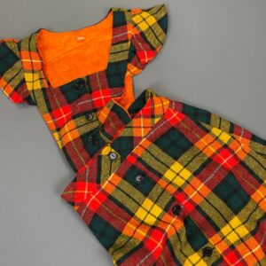 BRIGHT! WOOL MULTI COLORED CUTOUT BUTTON UP DRESS