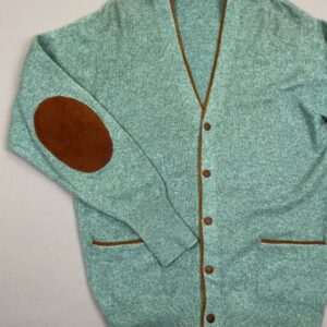 KILLER 1950S-60S BALLANTYNES CASHMERE WOOL CARDIGAN SWEATER SUEDE BINDING & ELBOW PATCHES