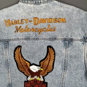 HARLEY DAVIDSON SLEEVELESS DENIM JACKET VEST W/ EMBROIDERED BACK