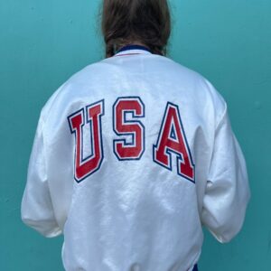 *AS-IS* USA SATIN SNAP BUTTON JACKET W/ ROAD & TRACK PATCH