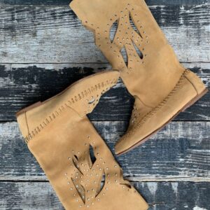 1980S SOFT BRUSHED BUCKSKIN LEATHER STUDDED FLAT PIXIE BOOTS LEATHER
