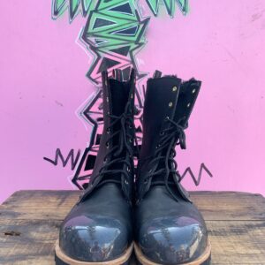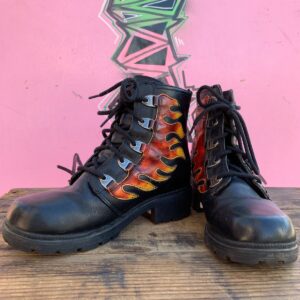 *AS-IS* RAD! FLAME CHUNKY LACE UP COMBAT BOOTS LEATHER LACE-UP BIKER BOOTS