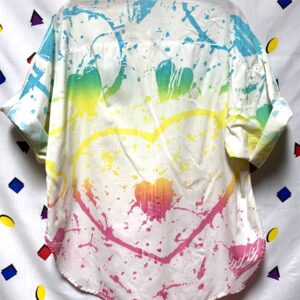 SWEET RAINBOW PAINT SPLATTER HEARTS ALLOVER PRINT SHORT SLEEVE BUTTON UP SHIRT