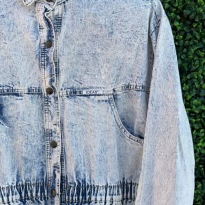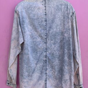 1980S ACID WASH DENIM STYLE LONG SLEEVE BUTTON UP W/ SHOULDER PADS