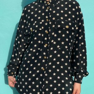 AMAZING SILK ALLOVER STAR PRINT BUTTON UP BLOUSE