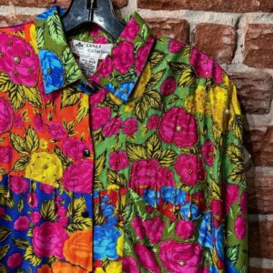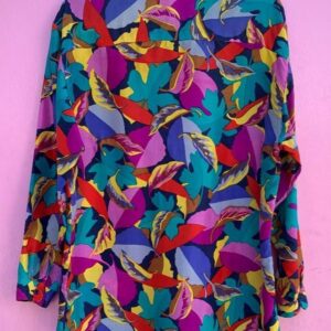 AMAZING HAWAIIAN PLANT PATTERN MULTI-COLOR SILK LONG SLEEVE BUTTON UP BLOUSE