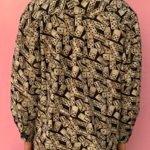 1990S DEADSTOCK LONG SLEEVE HEAVY SILK BUTTON UP DICE PRINT SHIRT