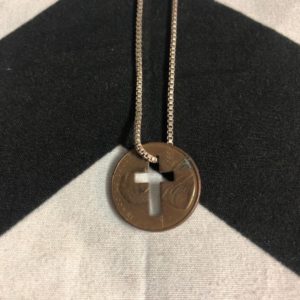NECKLACE PENNY W/ CUTOUT CROSS DESIGN & SILVER CHAIN