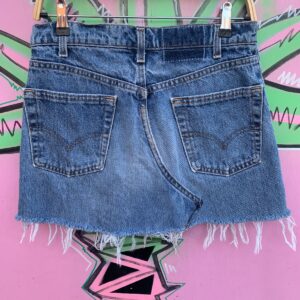 CLASSIC DISTRESSED LEVIS BLACK DENIM MINI SKIRT BUTTON FLY