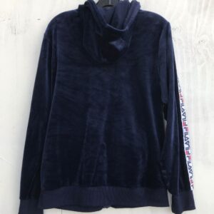 AMAZING FILA VELOUR TRACKSUIT JACKET WITH HOOD REPEAT LOGO STRIPED SLEEVES