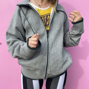 NIKE SB LS ZIP UP HOODIE JACKET WITH ELBOW PATCHES AND FOREST GREEN TRIM