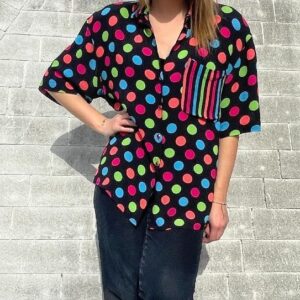 DEADSTOCK RAYON BEADED DETAIL FLORAL BUTTON UP BLOUSE