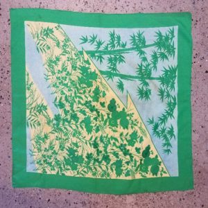 SILK SQUARE SHAPED SCARF W/ BAMBOO TREES & FLORAL PRINT