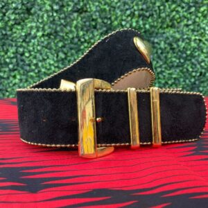 1990S SUEDE COLORBLOCK BELT CHUNKY MATTE GOLD HARDWARE