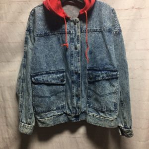 ACID WASH DENIM JACKET W/ CROPPED SWEATSHIRT UNDERNEATH