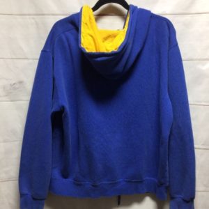 1990’S DENIM & SWEATSHIRT JACKET W/ COLOR-BLOCK DESIGN/HOODED & ZIP-UP