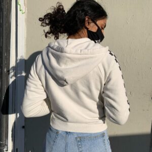 ZIPUP HOODED SWEATSHIRT W/ CHECKERED SLEEVES AS-IS