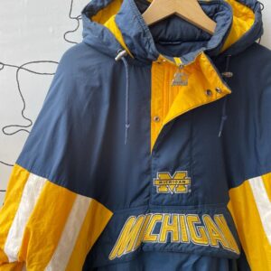 1990S STARTER JACKET UNIVERSITY OF MICHIGAN HALF ZIP PUFFER HOODED WINDBREAKER