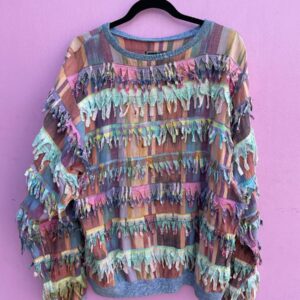 FRINGE TASSEL PASTEL STRIPED SWEATSHIRT