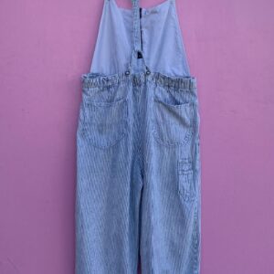 UNIQUE SHAPE PINSTRIPED CONDUCTOR WORK WEAR OVERALLS ZIP FRONT, LOW BACK