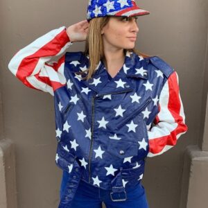 AMERICANA STRIPED STAR SPANGLED LEATHER MOTO JACKET