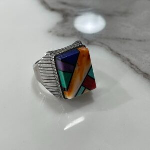 GEOMETRIC MULTI STONE INLAY RING 925 STERLING SILVER *SIGNED BLACK