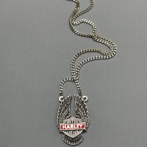 1974 DEADSTOCK ENAMELED HARLEY DAVIDSON WINGS & SHEILD ENAMEL PENDANT NECKLACE