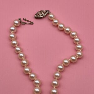 DAINTY NATURAL PEARL NECKLACE 925 SILVER FILIGREE CLASP HAND KNOTTED