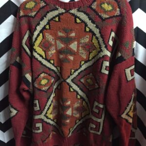 CHUNKY KNIT PULLOVER SWEATER W/BOLD SOUTHWEST DESIGN