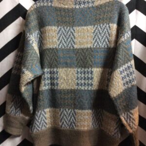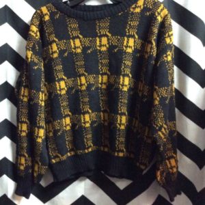 1970’S KNITTED SWEATER W/VERTICAL & HORIZONTAL STRIPES