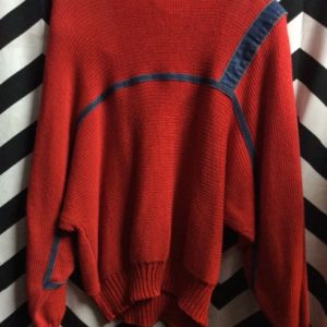 1980’S PULLOVER KNIT SWEATER DENIM TRIM & BRASS RIVETS
