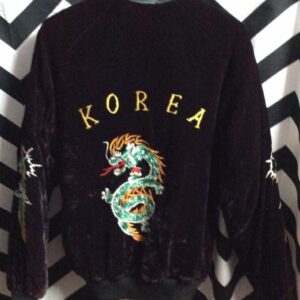 DARK MAROON VELVET KOREA DRAGON BOMBER