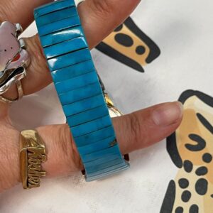 MENS STRETCH BAND WATCH TURQUOISE INLAY CIRCULAR FACE