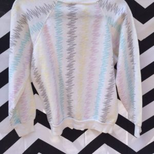 PULLOVER SWEATSHIRT, SCRIBBLED VERTICAL LINES DESIGN, PASTEL COLORS