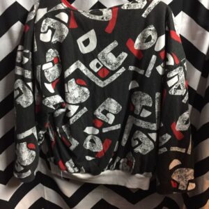 PUFFY PULLOVER CREW-NECK SWEATSHIRT W/ABSTRACT PATTERN