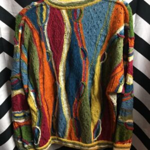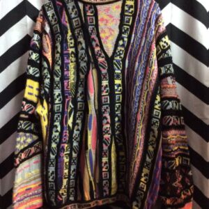 COOGI KNITTED PULLOVER SWEATER CREW NECK FUNKY MULTI COLOR
