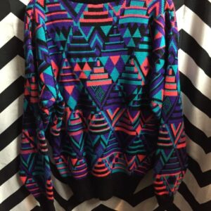 Neon Geometric Pattern Pullover Knit Sweater