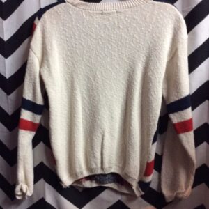SWEATER – PULLOVER VERTICAL STRIPES – LETTER B & STAMP PATCH