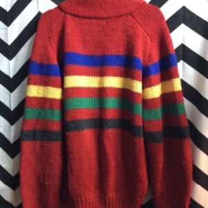 CARDIGAN SWEATER – HEAVY KNIT – W/HORIZONTAL STRIPES & MOOSE HEAD DESIGN