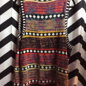 1970’S SWEATER VEST – KNITTED – STRIPES & DIAMOND PATTERN DESIGN