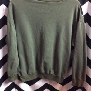 RETRO SWEATSHIRT – PULLOVER – COLOR BLOCK DESIGN – COLORED RINGER DESIGN ON NECK – STRIPED PANEL INSERTS UNDER ARMS & DOWN SIDES