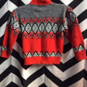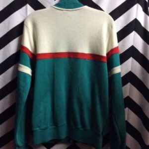 1970S RETRO SWEATER ZIP-UP W/STRIPES & COLOR BLOCK DESIGN