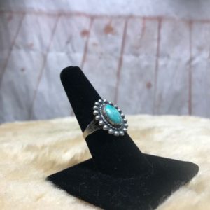 TURQUOISE STONE RING W/ SUN BURST DOTTED DESIGN STERLING SILVER 925 MOUNTING & SIGNED