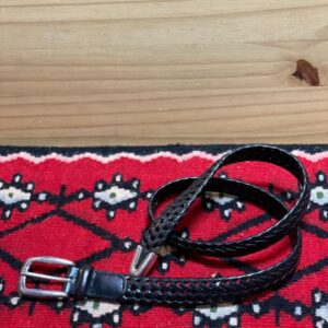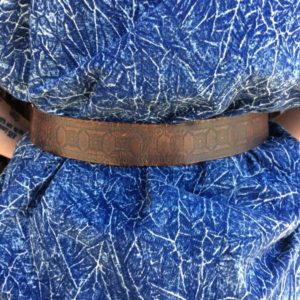 DISTRESSED EMBOSSED BROWN LEATHER BELT LEATHER WRAPPED BUCKLE -as is