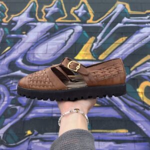 LEATHER CUT OUT WOVEN BUCKLE PLATFORM HUARACHES *DEADSTOCK