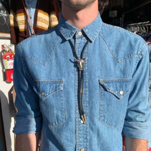 WESTERN COW SKULL PENDANT BOLO TIE BLACK WOVEN CORD