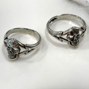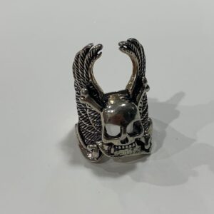 ZOMBIE CYCLE WINGED SKULL WITH MOTORCYCLE BARS SILVER BIKER RING