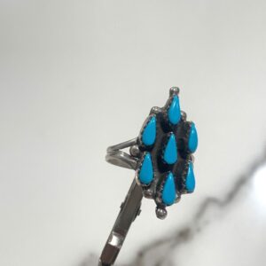 7 TEAR DROP TURQUOISE STONE RING STERLING SILVER *SIGNED HS
